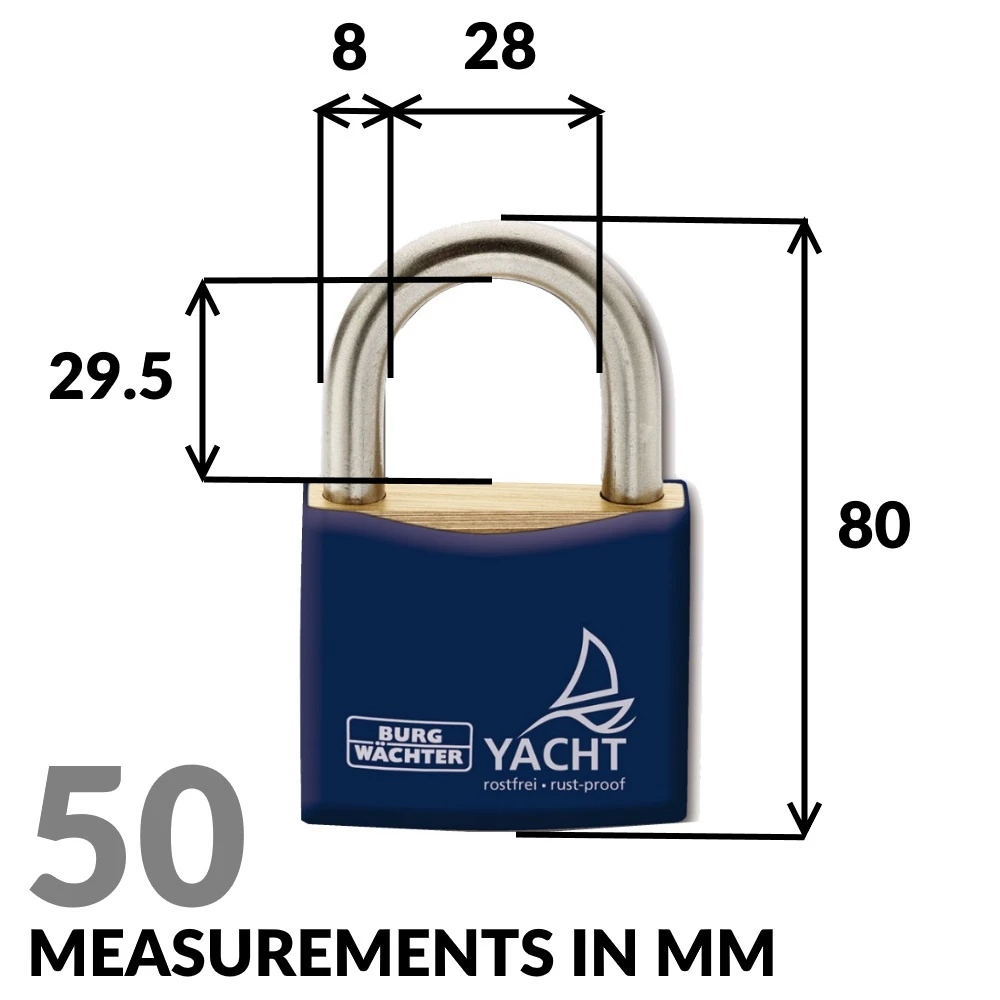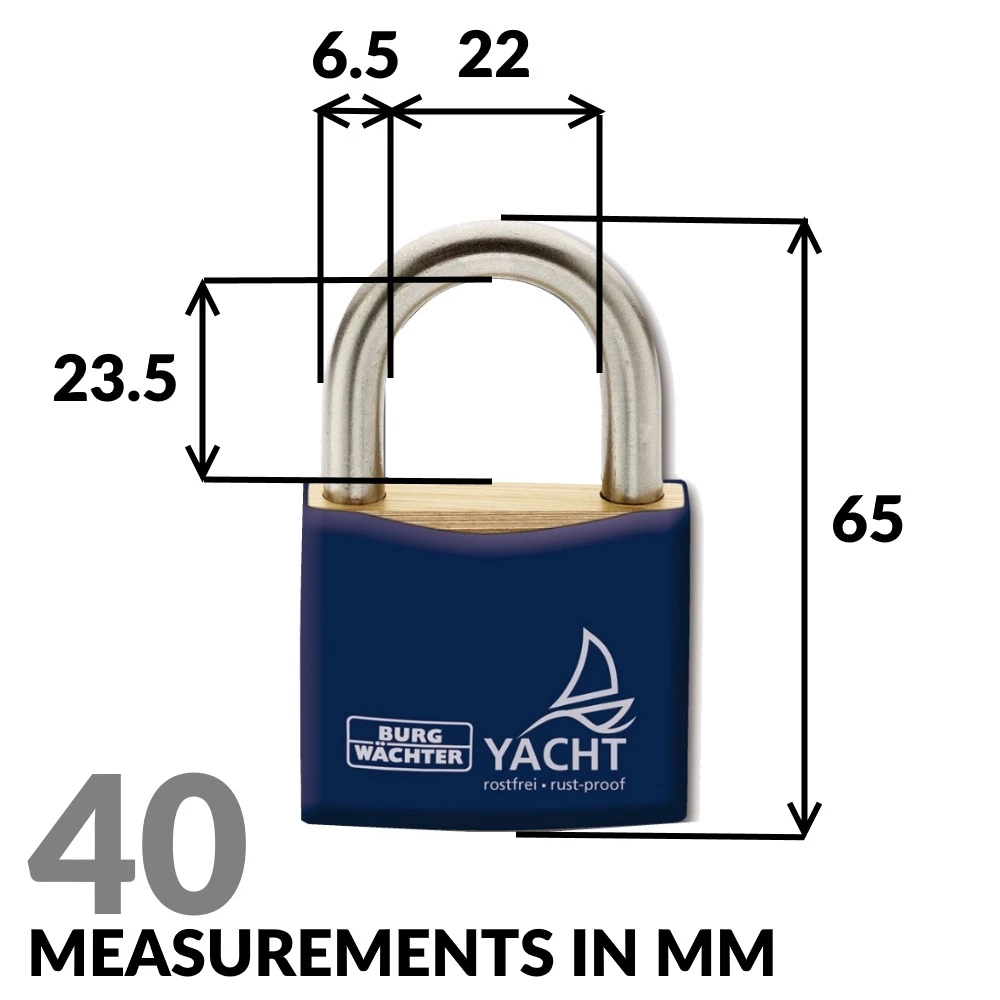 Burg Wachter ''Yacht'' padlocks are made to the highest standards. They are plastic coated to prevent the body of the lock from damaging your boat. These locks all feature a double bolt system ie both sides of the hasp are secure, not just one as on some cheaper locks. The solid brass body, stainless steel hasp and rustproof interior construction mean that these locks truly are designed for the marine environment.