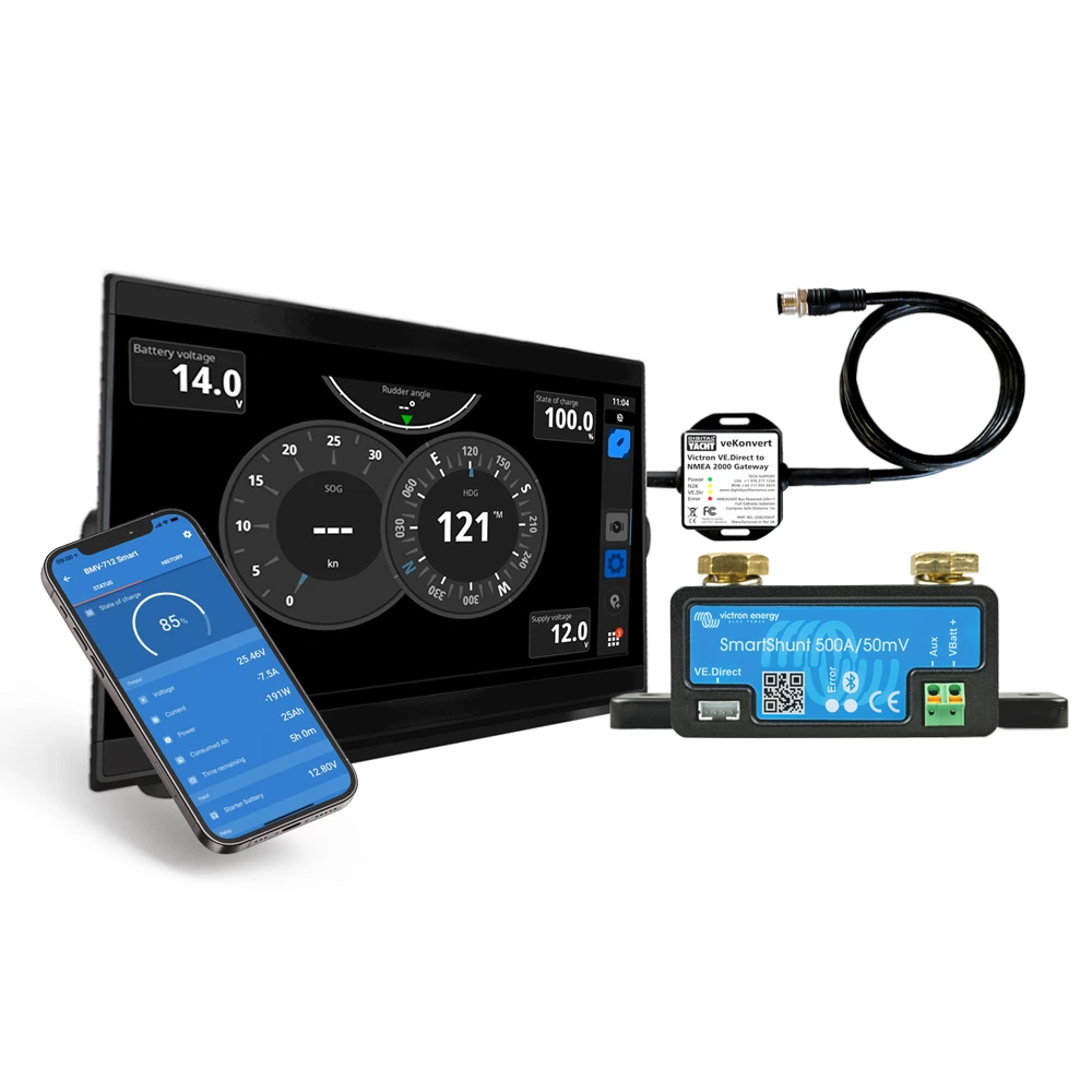 - Universal NMEA 2000 gateway for Victron’s popular range of smart battery monitors/SmartShunt using VE.Direct interface (see compatibility list in the FAQ tab)