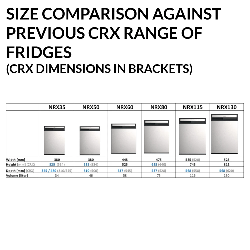 The NRX-C looks great and performs better. The new dark silver 2-tone front panel really modernises the look of this fridge while the excellent features of the prevous generation, such as the removable freezer compartment, full width handle and ventilation function are still present.