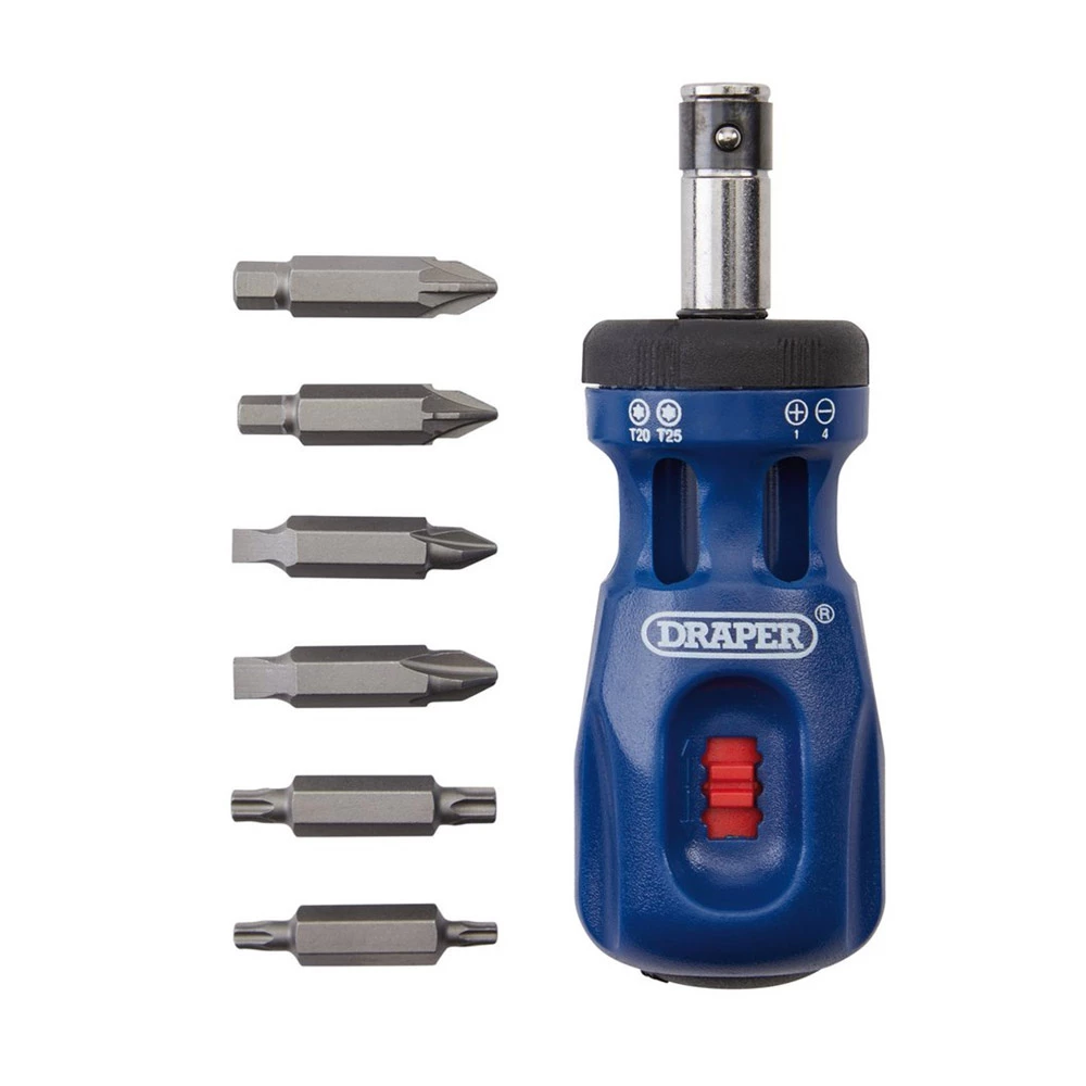 The handle features a 1/4" magnetic bit holder and contains 6 double-ended bits.