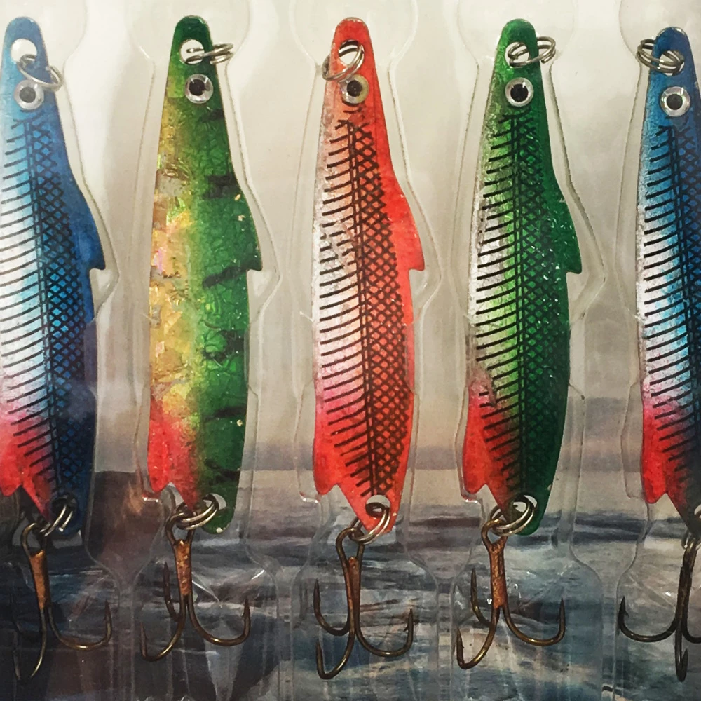 Suitable for predatory fish such as Bass. Ideal for use near the shore and from a boat. Pack contains 5 different coloured lures that each have a triple hook.