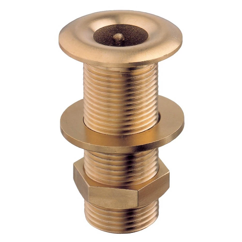 Brass Thru-Hull Skin Fitting - Moulded in a brass material with internal lugs for ease of securing. Ideal for applications above the waterline. Complete with backnut and washer.
