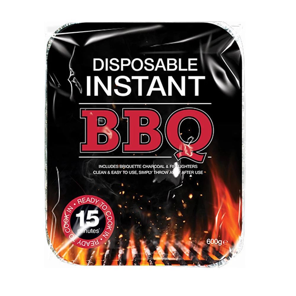 Replacement Disposable Barbecue. Ready to cook on in approx 15 minutes. Size: 30.5cm x 24.5cm x 4.5cm Includes 600g of pre-filled briquette charcoal and firelighters.