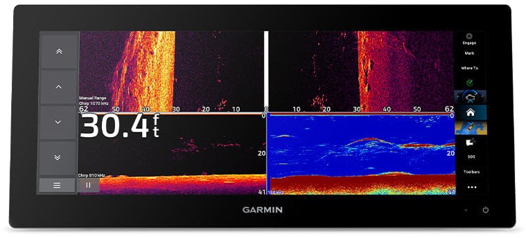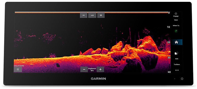 Get built-in support for 1 kW CHIRP traditional sonar for superior target separation. Plus, Ultra High-Definition ClearVü™ and SideVü™ scanning sonars feature vivid, high-contrast colour palettes to help distinguish fish from structure (transducer required - sold separately).