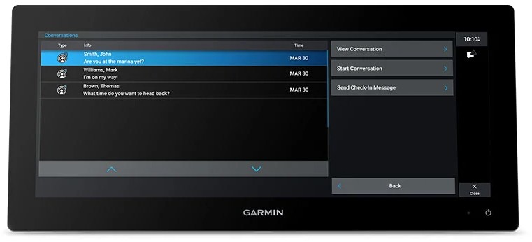 Pair your inReach satellite communicator3 to your chartplotter, and type custom messages by using your MFD’s on-screen keyboard. Access your contact list, or enter an email, inReach address or phone number. You can also group messages by conversation for a texting-like experience.
