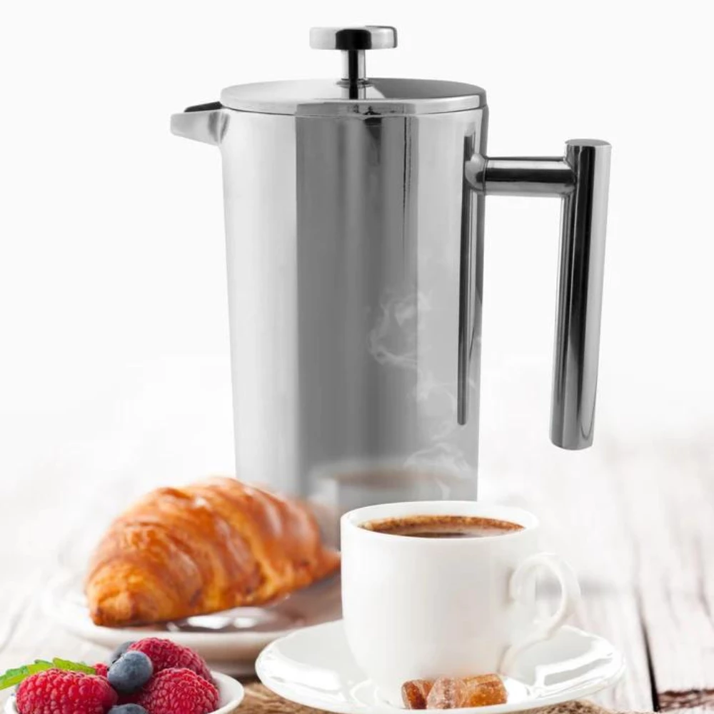 Stainless Steel Cafetiere - There’s nothing like having a cup of real coffee on board. This stylish, high quality, unbreakable stainless steel cafetiere features double-wall construction and a stainless steel plunger. Just as useful at home!