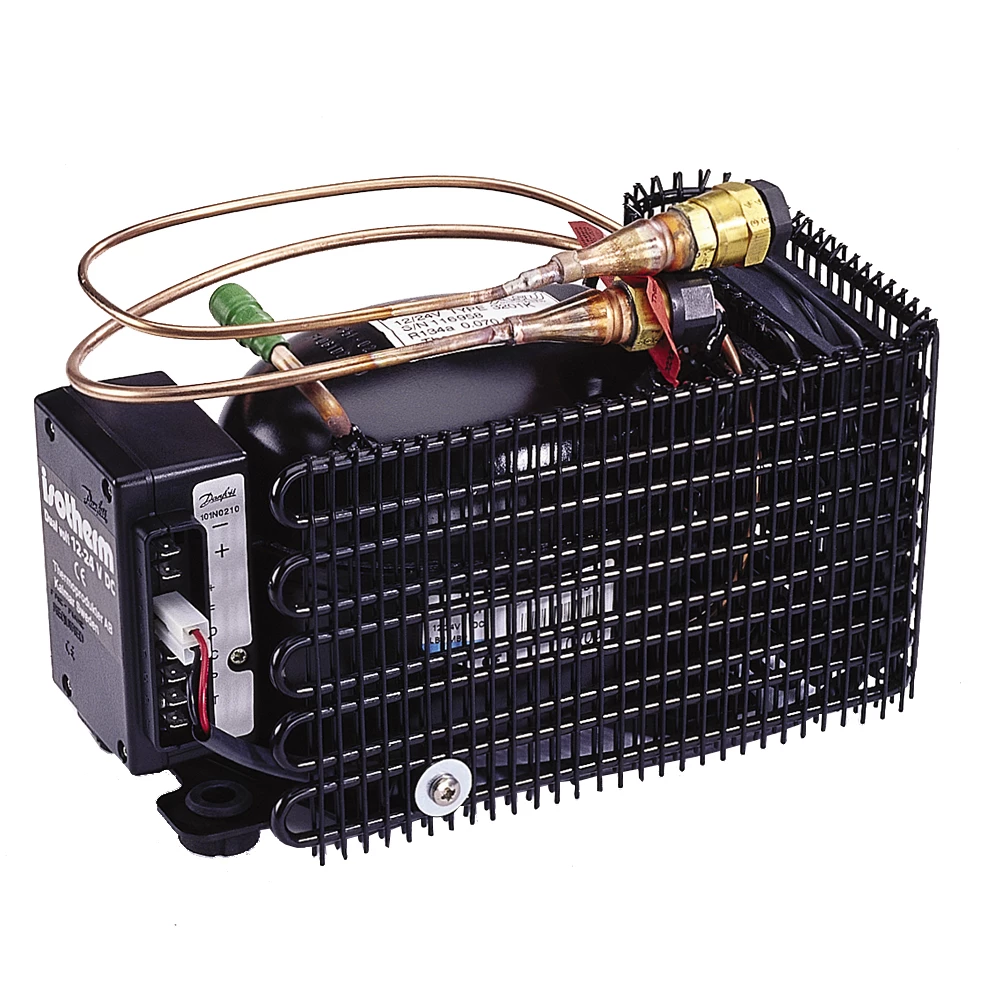 Designed for easy DIY installation thanks to the “click-on” mounting bracket system, the air-cooled compressor features a quiet running fan to blow air through the condenser to remove heat. The cooling pipes that connect the compressor to the cooling plate feature 'quick connect' fittings, so that you can connect the two items together without any loss of refrigerant. The unit comes pre-filled, and does not require filling after installation. It is advisable that the compartment that the compressor is installed in is well ventilated allowing cold air to enter from below and hot air to escape to the top. The evaporator plate, which is fitted in the coolbox, connects to the compressor with self-sealing quick couplings.