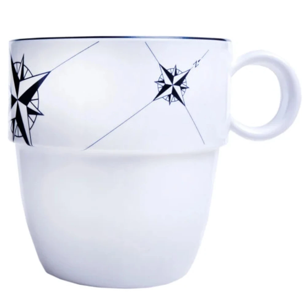Northwind Non-Skid Crockery Pack - A 16 piece set of top quality marine tableware featuring a tasteful navy and white compass design. The dinner plate, bowl, side plate & mug have an anti-skid rubber ring set into the bottom to stop them sliding across your table. Made from unbreakable melamine, they are dishwasher & microwave safe.