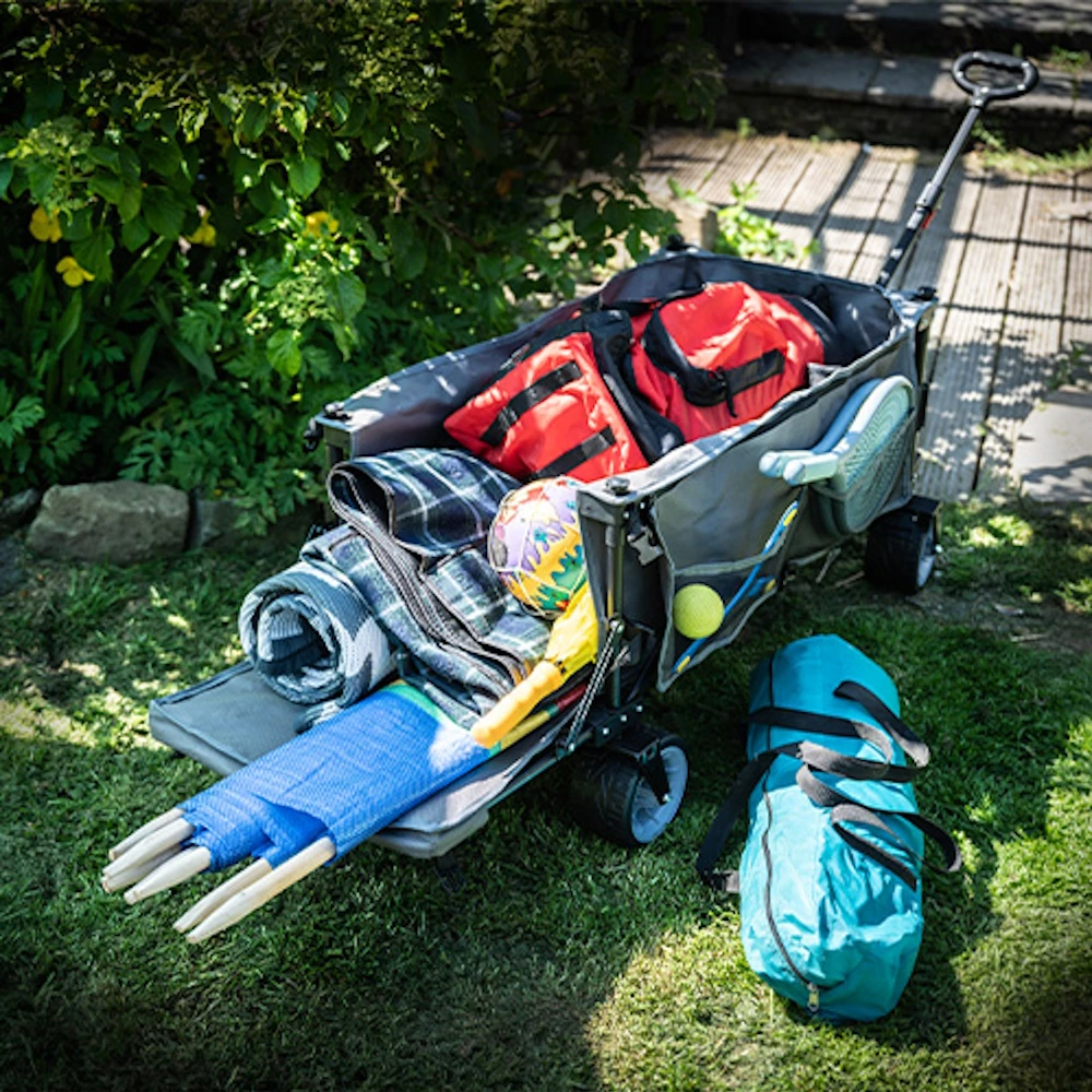 Ideal for festivals, beach days, camping or loading the boat up for the day. Move all your equipment with ease using this large capacity trolley. Even longe and unwieldy items will fit, thanks to the fold down section.