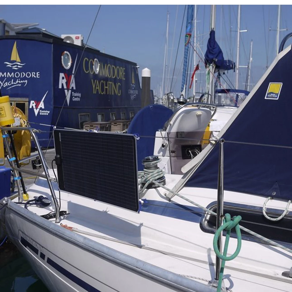 A highly efficient solar panel designed specifically for the marine market with a size of 880mm x 395mm, the panel is neatly shaped to fit a dodger and it can deliver up to 360w a day to help ensure the leisure battery is charged and ready for use.