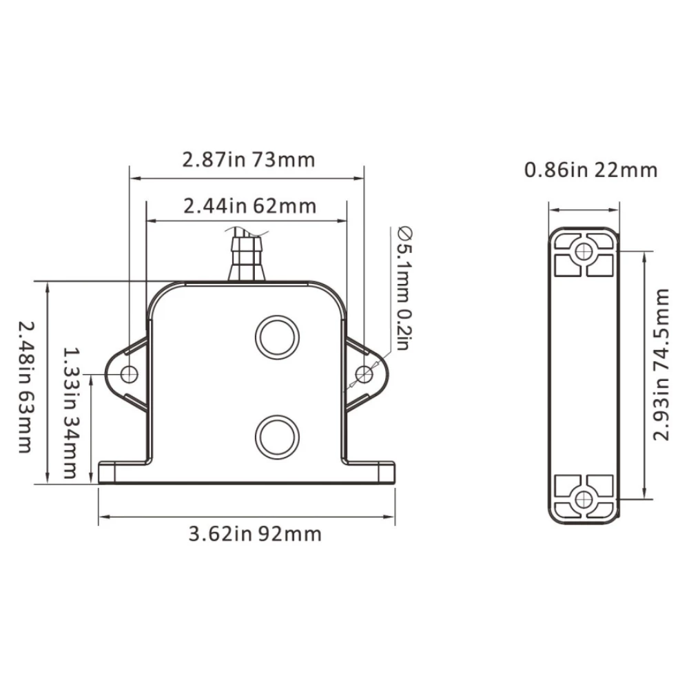 This Seaflo electric field bilge switch senses the water level and automatically controls a 12V or 24V bilge pump. The switch turns on when it senses 41 mm (1.6") water level and turns off when water is below 9.5 mm (0.37"). This product is designed for use in pleasure boat applications, and is not intended to be used in commercial marine and boating applications or for any other use.