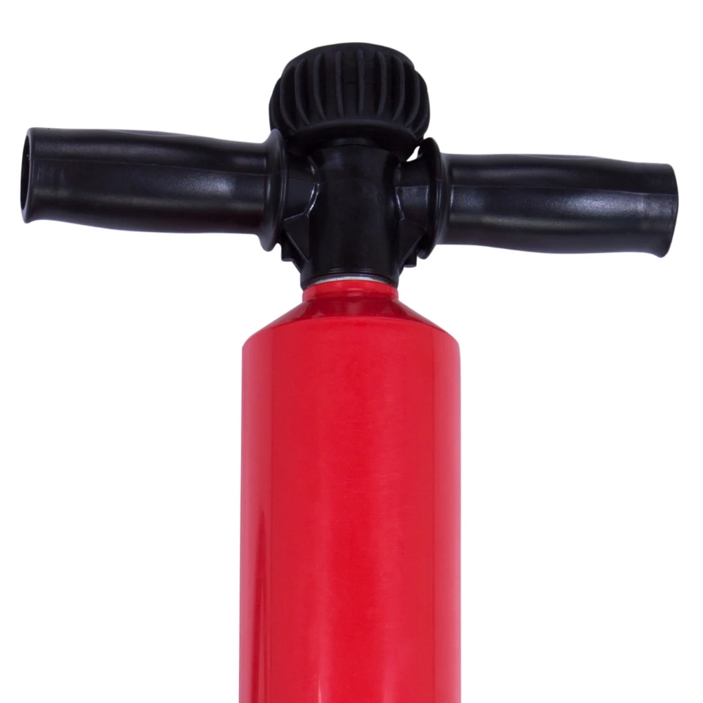A neat pump that will handle the high pressures required for SUPs (20+ Psi), but will equally inflate inflatable kayaks and other toys. A pressure gauge allows for accurate pressure measurement. This pump is fitted with a bayonet style connector which is common to alomost all inflatable paddle boards.