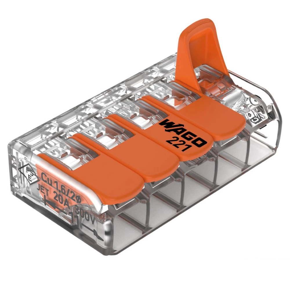 These compact lever connectors allow you to quickly connect solid, stranded, and fine-stranded conductors without tools. Simply lift the lever, insert the wire, and push the lever back down – job done.