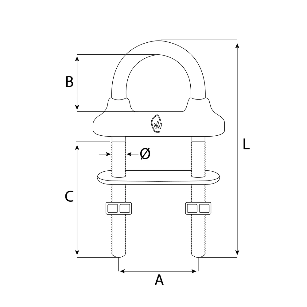 Wichard stainless steel watertight U-bolt. Both stylish and practical, the UV resistant rubber collar on Wichard watertight U-bolts eliminates the need to use a waterproof sealant.